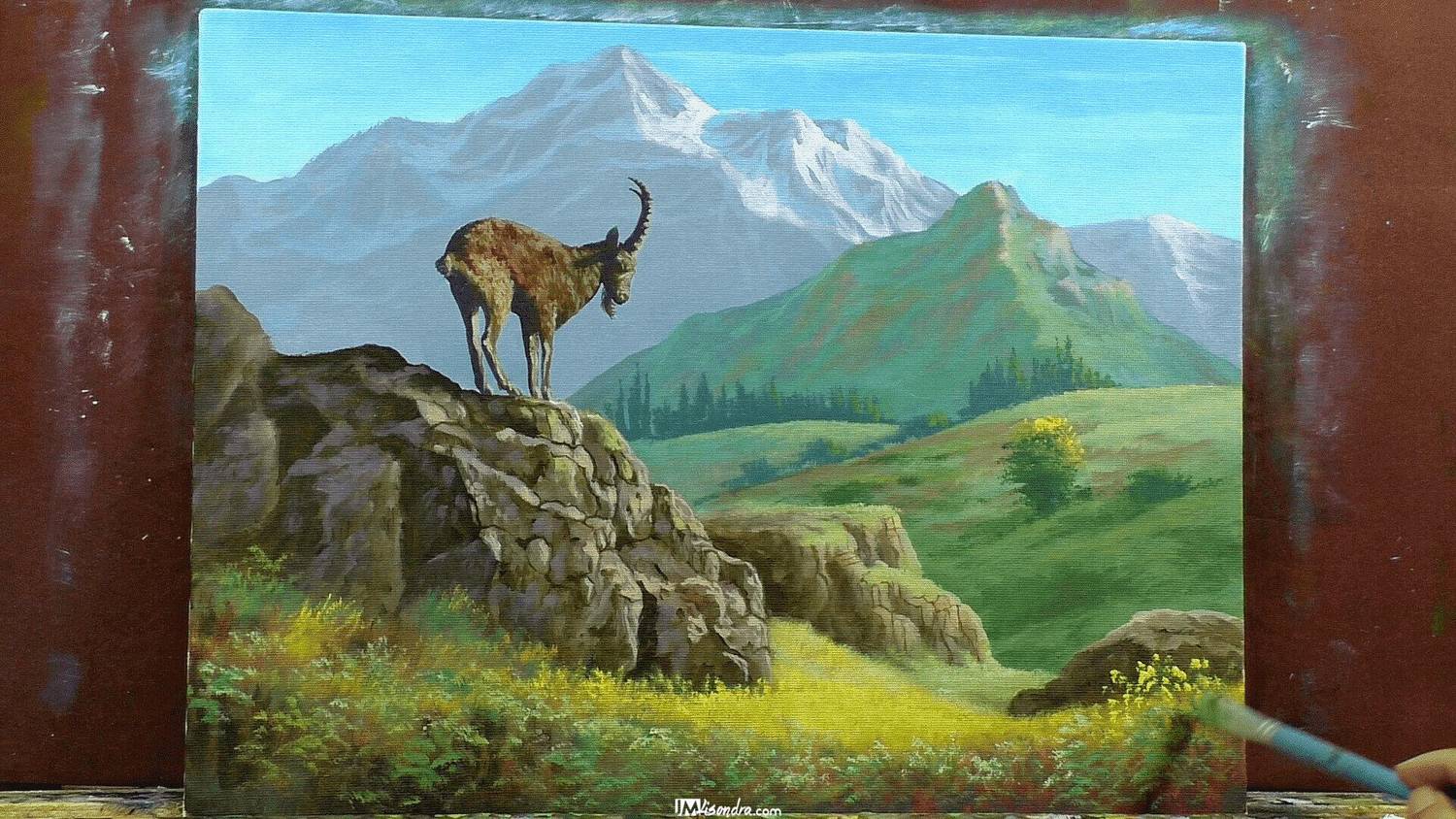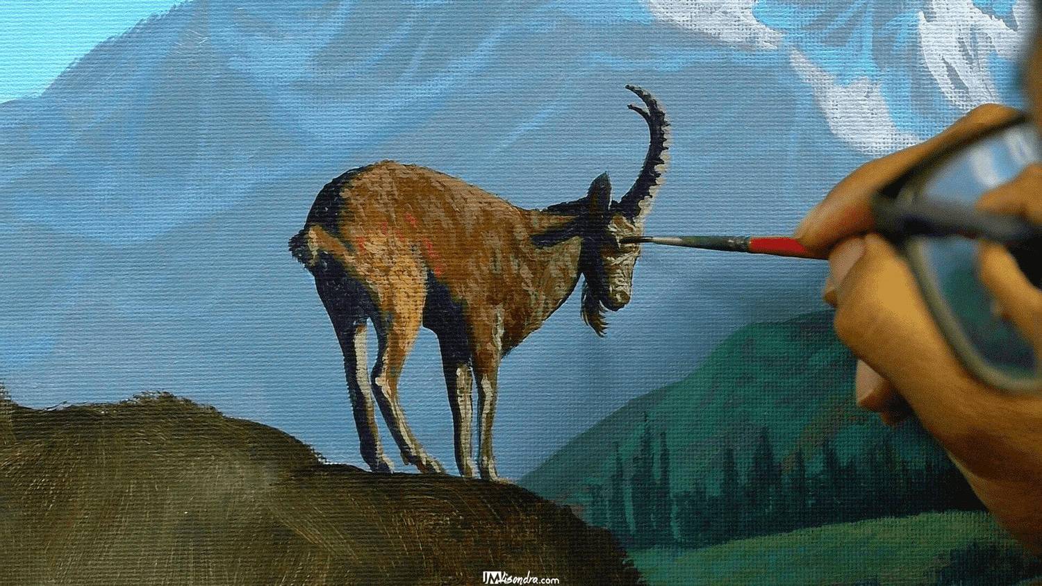Join JMLisondra in this 2-hour and 6-minute full-length acrylic painting tutorial and learn how to paint a majestic mountain goat standing proudly on rocky terrain. This real-time, step-by-step lesson is ideal for artists who want to improve their animal painting techniques while mastering textures, lighting, and natural backgrounds.