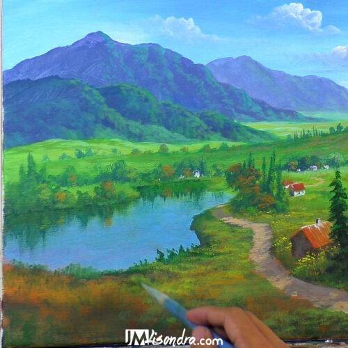 In this 1 hour and 39 minutes full-length acrylic painting tutorial, artist JMLisondra walks you through every step to paint a peaceful and scenic overlooking view of a lake. Perfect for artists of all levels, this real-time tutorial teaches essential techniques for creating depth, perspective, and natural atmosphere in a landscape painting.