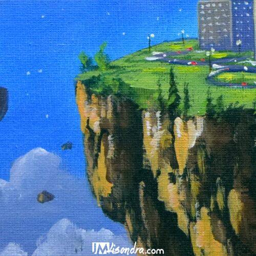 Crafted with meticulous attention to detail, the "Floating City" painting showcases JMLisondra's exceptional talent and unique artistic vision. The use of acrylic paints lends a vibrant and dynamic touch to the artwork, resulting in vivid colors that beautifully come to life. Each brushstroke tells a story, inviting viewers to explore the imaginary metropolis suspended above the clouds.
