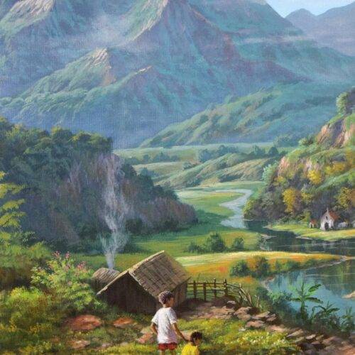 JMLisondra's expert use of acrylics brings this serene scene to life, making it a perfect addition to any art collection or home decor. "Landscape Painting - Going to Church" is more than just a visual delight; it's a celebration of nature, community, and the peaceful moments of rural life.